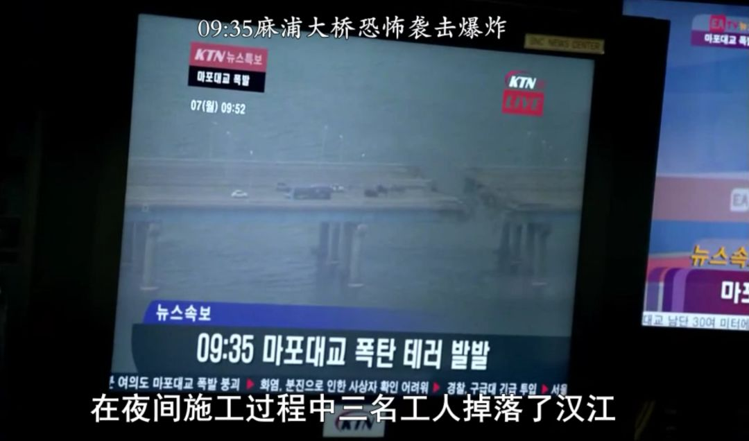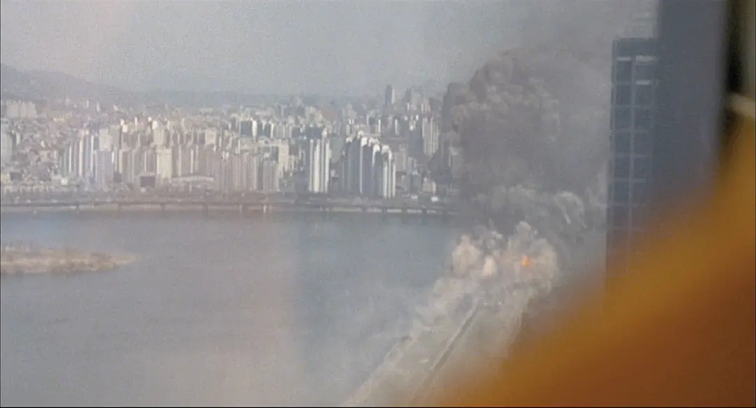 挂了电话后还没等到节目中的广告播完,麻浦大桥就真的被炸了,他所在的广播大楼直接可以看到麻浦大桥,尹英华急忙跑去窗边验证,看到作为交通要塞的大桥真的浓烟滚滚,这下惊呆了。